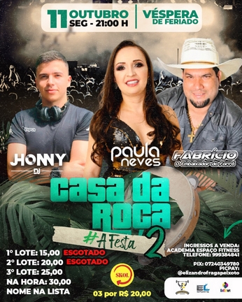 “Vamos levar muito sertanejo, muito forró pra ninguém ficar parado, vamos fazer um show incrível para o público que nos aguarda” convidou a Cantora Paula Neves.