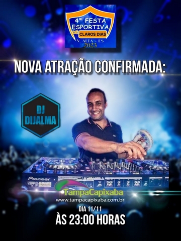 No Sábado (11), o som vai ficar por conta do “DJ Dijalma” que não vai deixar ninguém ficar parado, mixando os melhores hits, na “4⁰ Festa Esportiva de Claros Dias” 2023.